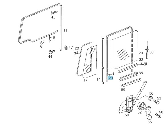 Raamrubbber deur U-serie. Hier schuift de raam door heem bij het open en dicht draaienPassend op Unimog: 425