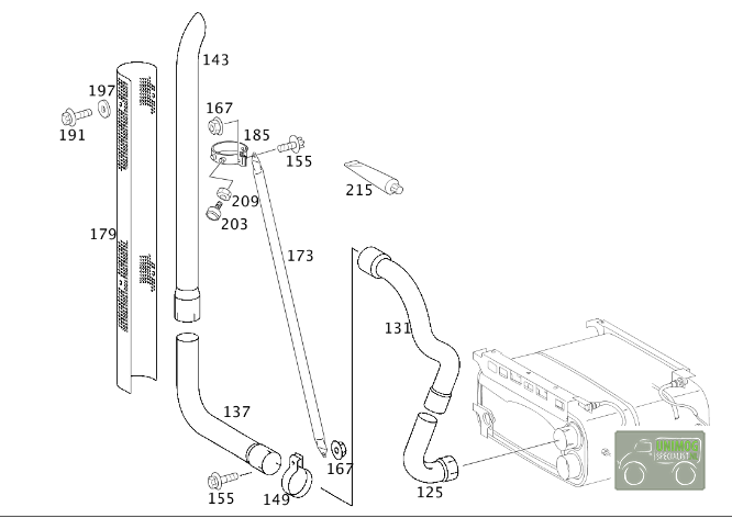 Uitlaatbocht U405Uitlaatbocht achter de cabine Buitendiameter smalle stuk: 10 cm Buitendiameter overschuifstuk: 10.5 cm Afgebeeld als nummer 137 op de laatste afbeelding (montagetekening)